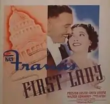 First Lady is a 1937 film about behind-the-scenes political maneuverings in Washington, D.C. directed by Stanley Logan and starring Kay Francis, Preston Foster, Anita Louise, Walter Connolly and Verree Teasdale. Francis and Teasdale portray bitter rivals in their pursuit of the title role of First Lady. The picture is based on the 1935 play of the same name by George S. Kaufman and Katharine Dayton.