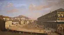 Vanvitelli's 1706 depiction of Largo di Palazzo. The fountain is seen on right lower corner, but it does not show the colossal statue.