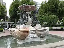 Turtle Fountain in Bloomfield Hills, Michigan is situated on a circular terrace alongside Cranbrook House. In recent years the fountain was restored, funded by Cranbrook House and Gardens Auxiliary.[25] Photographs of Turtle Fountain on the grounds of Cranbrook House may be found through a web search.