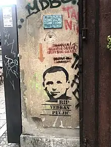 Oliver Knezović fled to Zagreb, Croatia, where he would not be extradited to the authorities of Bosnia and Herzegovina, as there is no agreement on this issue between the two countries. He gave an interview for a local TV network, asserting his innocence.[18] After the interview Knezović surrendered to a Zagreb police station with his lawyer.[19] An autopsy revealed that Puljić was killed by a bullet from a police pistol.[20] Knezović reportedly had been shooting from an AK 47.[21][22] Citing unnamed police sources, some media reported that Knezović took the pistol from an officer before shooting Puljić.[23][24] Knezović said that he had taken the pistol but returned it to the policeman before the shooting. He later came to the police station, but escaped after claiming that the police were looking to arrest him for not only shooting at members of Horde Zla (which he does not dispute he did) but also for the murder of Vedran Puljić (which he claims was committed by someone else.[19] The policeman Dragan Vujović was also taken into custody in relation to the murder of Puljić. Citing unnamed police sources, some media reports claimed Vujović is being investigated as an accomplice to murder.[24] Other media reports said that Vujović's hands tested positive for gunpowder residue, which he purportedly claimed was due to his coming into contact with the large quantities of fireworks used that day. Some reports say that the policeman has failed a polygraph test in relation to the event.[24]