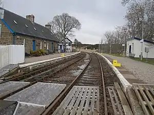 Forsinard railway station (/ˌfɔːrsɪnˈɑːrd/) is a railway station serving the village of Forsinard in the Highland council area in the north of Scotland. It is located on the Far North Line, 125 miles 69 chains (202.6 kilometres) from Inverness, between Kinbrace and Altnabreac.[3] The station is managed by ScotRail, who operate the services at the station.