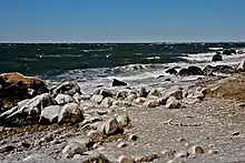 Long Island was occupied throughout the war and the bay was used by the British for their blockade of Connecticut. In 1781 HMS Culloden ran aground while pursuing a French frigate during a January storm. The ship, which survived the initial ground hit a rock and had to be scuttled in the bay at Culloden Point and burned with its canons thrown overboard. Its debris field and wreck site is now the only underwater park on Long Island.