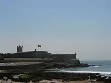The defensive arrangements also incorporated the Tower, later Fort of São Lourenço do Bugio, situated on a sandbank in the middle of the Tagus estuary, and the role of these two forts to protect the entrance to the Lisbon bar were complemented by the Citadel of Cascais, as a first defence at the mouth of the river, and by the Tower of Belém close to Lisbon and the Fort of São Sebastião de Caparica on the left bank, which were seen as a last line of defence.[4] Additional work continued in 1573, when those awaiting deportation and held in the fort's dungeons were used for forced labour. In 1579 a Spanish spy in the service of Philip II of Spain produced a drawing of the fort, which was subsequently attacked from the land by Spanish troops under the command of the Duke of Alba. The garrison surrendered on 13 August 1580.[1][3]