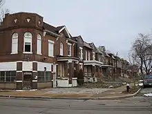 Fountain Park is a neighborhood of St. Louis, Missouri, United States. Originally the Aubert Place subdivision, it was laid out by John Lay in 1857.[2] The Fountain Park neighborhood is located in north St. Louis with Martin Luther King Drive on the north, Delmar Boulevard on the south, Walton Avenue on the east, and Kingshighway Boulevard on the west. It is just two blocks north of the Central West End (CWE) of the city. The Fountain Park neighborhood is named after Fountain Park, a small oval-shaped city park near its center. A Martin Luther King Jr. statue sculpted by Rudolph Edward Torrini is situated on the west side of the park.