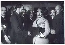 In late September General Louis Franchet d'Espèrey ordered Jouinot-Gambetta to advance on Skopje during the Vardar Offensive. Jouinot-Gambetta led his brigade into the midst of a retreating mass of Bulgarians, navigating pockets of resistance from German troops.[7] His brigade advanced along the Crna River and took Prilep on 23 September. Skopje was captured, without resistance, on 29 September.[8] During the advance Jouinot-Gambetta's brigade had covered 57 miles (92 km) in six days.[3]