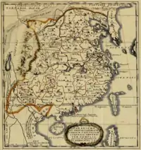He wanted to join the Japan mission but by this point Christianity (and European visitors generally) had been banned within the Tokugawa shogunate for many years.[1] He nonetheless traveled to Lisbon, Portugal, and left for East Asia in January 1684. His journey was funded by Maria, the duchess of Aveiro.[1] He hoped to get passage to Japan on a Dutch East India Company mission, but in Malacca he was assured by "Belgian Catholics from our cities" that this was impossible.[3] He debarked at Macao on 9 August 1685, where the return of some shipwrecked Japanese sailors caused him to hope that trade would be resumed; this was fruitless.[4] He made his vows of poverty, chastity, obedience, and the fourth vow of "special obedience" to the pope on 2 February the next year[1] and, after a final failed attempt to reach Japan,[5] finally formally joined the China mission[1] by September 1687.[5] He is sometimes numbered among the Figurists,[6] the Jesuit missionaries who came to think that Christianity had been the ancient religion of China, brought there by Noah's son Shem.