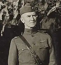 With the American entry into World War I in April 1917, Parker was promoted to brigadier general and commanded the 18th Infantry Regiment from early 1918 until late August 1918 when he took command of the 1st Infantry Brigade before succeeding his friend and mentor, Major General Charles P. Summerall, as commander of the 1st Division in October.[3][6] Parker was, like his predecessor, an aggressive commander, always managing to maintain a strong grip on his subordinates. He was, however, described by various senior officers as being too self-centered and impulsive, and often unable or unwilling to consider the opinions and viewpoints of his superiors.[6]