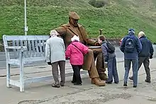 Some of Lonsdale's other works are also located in the town, including The Tunney on Marine Drive, South Bay; The Smuggler's Apprentice on Merchant's Row, South Bay; A High Tide in Short Wellies in Filey and Pull Don't Push in Dalby Forest.[14] Another of Lonsdale's works, 1101, known popularly as Tommy, depicting a First World War Soldier is situated in Seaham, County Durham.[15]