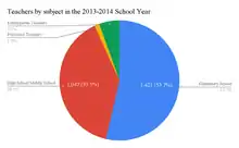 Frederick County Public Schools District staff members, spread throughout the district's sixty-nine schools and central office, totaled a number of 5,763 in the 2021–2022 school year. Out of the 5,763 staff members, 2,889 were teachers and 2,874 were classified as other staff members. There were 153 school guidance counselors throughout the district. There were 758 instructional aides in the district to assist in the academic setting. In the district administration side of staffing, there were 181 district administrators and 115 district administrative support working in the system in an administrative capacity. In the school administrative side, there were 195 school administrators working in the district which includes principals and assistant principals. 302 members of staff were classified as school administrative support.[1]