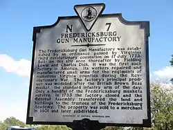 The Fredericksburg Gun Manufactory Site is a historic archaeological site in Fredericksburg, Virginia. The manufactory was founded in 1775 by Charles Dick and Fielding Lewis, proprietor of the nearby Kenmore Plantation, and brother-in-law to George Washington, to provide guns and ammunition to the Continental Army and state militia during the American Revolutionary War. Lewis in particular invested more than £7000 in the endeavour, for which he was never compensated by either the state or the Continental Congress.[2] The factory was closed at the end of the war.
