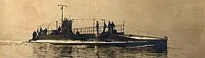 The submarine was armed with four 450 mm (17.7 in) torpedo tubes and a 75 mm (3.0 in) L/34 M1897 deck gun.[2] The crew consisted of 31 officers and seamen.[4][3]