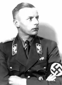 During the first months of the war in Poland, he was one of the coordinators of Action AB - the mass murder by shooting of Polish intelligentsia, which was performed by Orpo or ethnic Germans (Volksdeutscher Selbstschutz). The victims were mainly University lecturers, retired military officers, high-rank policemen, managing staff of the Polish State Railways, journalists, businessmen, landowners, notable Catholic priests, internationally known sportsmen (vide Janusz Kusociński), judges, teachers, social workers, senior administrative officials or other members of Polish intellectual elite.[9]