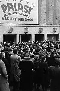 The building suffered most in March 1945 due to repeated air attacks. Damage caused the plays to be removed from March until August 1945. Spadoni and Lupo ran the Building as the Palace of the 3000/Theater of 3000 or Palace at the Friedrichstrasse station and Palace Variety.