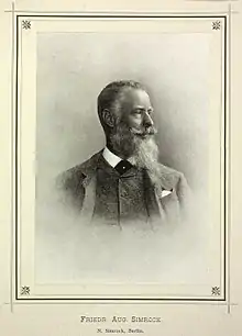 Friedrich August Simrock, better known as Fritz Simrock (January 2, 1837 in Bonn – August 20, 1901 in Ouchy) was a German music publisher who inherited a publishing firm from his grandfather Nikolaus Simrock. Simrock is most noted for publishing most of the music of Johannes Brahms and Antonín Dvořák.