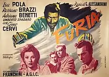 Fury (Italian: Furia) is a 1947 Italian melodrama film directed by Goffredo Alessandrini and starring Isa Pola, Rossano Brazzi and Gino Cervi. The film was remade in 1957 as Wild Is the Wind, Anna Magnani's second Hollywood role.[1] Loosely based on Giovanni Verga's novel La lupa, it is a melodrama set in the horsebreeding community.