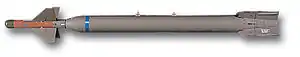 The GBU-28 is a 5,000-pound (2,268 kg) class laser-guided "bunker busting" bomb produced originally by the Watervliet Arsenal, Watervliet, New York. It was designed, manufactured, and deployed in less than three weeks due to an urgent need during Operation Desert Storm to penetrate hardened Iraqi command centers located deep underground. Only two of the weapons were dropped in Desert Storm, both by F-111Fs.[2] One GBU-28 was dropped during Operation Iraqi Freedom,[3] and some reportedly during the 2021 Israel–Palestine crisis.[4][5]