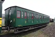 GCI was a class of Belgian passenger carriage. GCI were introduced in the beginning of the 20th century. They had a metal frame but the body was made of wood. They are based on GC coaches, which stood for "Large capacity" conveniently in both French and Dutch, they were indeed larger than any previous NMBS/SNCB coaches; they were the first to have three axles but most of them had fully separate compartments, that could only be reached from outside. On GCI coaches, a side corridor was provided, at the inconvenience of reducing seating capacity; from 96 to 80 in 3rd class. Most of them had an open platform and a toilet at the other end but on some cars the toilet was omitted and replaced by a second platform and a few 3rd class cars had both a toilet and an enclosed platform (fitted with folding seats). The name I in the name GCI was indicating interconnection.
