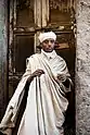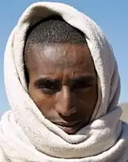 Characterized by its thickness, the Gabi is the traditional garment of men belonging to the Amhara ethnic group due to the high altitude nature of their homeland, most of the time it's worn by the elderly and clergy.[2] Usually Amhara women get together for spinning the yarn required to make several Gabi's. Amhara women present Gabi's as a gift for their husbands.[3]