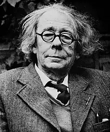 Turville-Petre was appointed the first Vigfússon Reader in Ancient Icelandic Literature and Antiquities at University of Oxford in 1941.[1] At the time he was serving as a cryptoanalyst at Bletchley Park.[3] He spent much of World War II in the Foreign Office, and was not able to take up his position at Oxford until 1946.[8] In August 1942 he was dispatched by the Foreign Office to the Faroe Islands "in order to study the inhabitants, their politics and conditions of life", staying there for two months.[3] In 1941–1942 Turville-Petre entered into a notable dispute with Charles Leslie Wrenn over the date of composition of the sagas of Icelanders.[10] In his notable Notes on the intellectual history of Icelanders (1942), Turville-Petre provided a summary of early Icelandic literary history which is still considered authoritative, and argued that these sagas were composed in from the 13th century.[1] This view has since become generally accepted. Apart from the dispute with Wrenn, Turville-Petre was not involved in many scholarly controversies.[10] He had little patience for charlatans, but was known for his tolerance and kindness to amateurs genuinely interested in gaining knowledge in his fields of expertise.[11] Though Turville-Petre never derided his students or fellow scholars for their intellectual shortcomings, he strictly demanded that his students dedicate themselves as rigorously to scholarship as he himself did.[12]