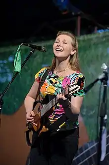 Galina Khomchik (with a hundred songs to her repertoire, including those by Okudzhava, Vizbor, Nikitin, Kim, and Novella Matveeva urban folk classics' interpretations) released ten solo albums and features in numerous Russian modern/urban folk music compilations.[2] She is one of just two (another being Yelena Kamburova) non-writing artists who are featured in the Most Famous Bards of Russia encyclopedia (all others being songwriters).[4][5]
