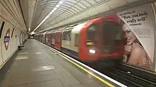 Gants Hill is served by the Central line between Redbridge and Newbury Park stations.[41] Train frequencies vary throughout the day, but generally operate every 3–4 minutes between 05:23 and 23:57 westbound and 06:25 and 01:03 eastbound.[42][43]