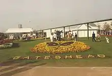 The Gateshead Garden Festival was the fourth of the United Kingdom's five national garden festivals. Held between May and October 1990, in Gateshead, Tyne and Wear, it lasted 157 days, and received over three million visitors.[1] Attractions included public art displays, a Ferris wheel, and dance, music, theatre and sporting events.[1] The site comprised four areas: Norwood, Riverside, Dunston and Eslington Park,[2] and several modes of transport were provided around the site: a monorail which ran between Norwood and Eslington, a narrow gauge steam railway between Dunston and Redheugh, and a road train which covered the entire site. A ferry across the River Tyne, between Dunston Staithes and Newcastle Quayside, was also provided.[1]