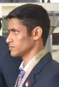 Gaurav Solanki (born 21 January 1997) is an Indian boxer. He competes in the 52 kg category. In the year 2018, at the Commonwealth Games held in Gold Coast, Queensland, he won the gold medal in boxing's flyweight 52 kg category.[3][4] He hails from Ballabgarh, Faridabad, Haryana.