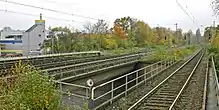 Overpass carrying the tracks over Königswiese, the infrastructure on the left was designed for a double-track line to Marl, 2014
