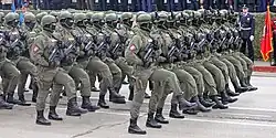 The Gendarmery (Serbian: Жандармерија, romanized: Žandarmerija) is the national gendarmerie force of Serbia, tasked with high-risk and specialized law enforcement duties. It is under the authority of the Police Directorate of the Serbian Police and consists of about 2,800 members.[2]