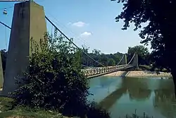 The General Dean Suspension Bridge spans the Kaskaskia River at Carlyle in Clinton County, Illinois, United States. It is named after Major General William F. Dean, a native of Carlyle who served during the Korean War. The bridge is listed on the National Register of Historic Places. It was added to the Register in 1973.[3]
