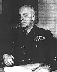 The 41st Division's annual summer camp at Fort Lewis in June and July 1940 was extended from two weeks to three,[2] and on September 16, 1940, with President Franklin D. Roosevelt's signing of the Selective Training and Service Act of 1940, the 41st Division was inducted into Federal service for one year.[3] Selective service men began to arrive in February 1941.[4] In May 1941, the 41st Division moved to the Hunter Liggett Military Reservation where June war games pitted it against Major General Joseph Stilwell's 7th Infantry Division and the 40th Infantry Division. Large scale maneuvers continued in August on the Olympic Peninsula.[5] George A. White would become Oregon's longest-serving adjutant general, having served from 1915-1918 and 1920-1941.[6]Historical Outreach Foundation
