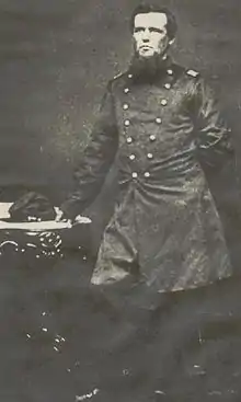 At the start of the Civil War Kellogg accepted a commission to recruit troops for the volunteer regiments of the Union Army.[8] He helped raised the 1st Vermont Cavalry Regiment and was appointed Lieutenant Colonel and second in command.[9] Kellogg was the regiment's de facto commander and took part in several battles, but was unhappy at not receiving promotion to Colonel and command of the regiment after the resignation of Lemuel Platt, its first commander, and the death of Jonas P. Holliday, who had succeeded Platt. As a result he left the regiment, and was discharged in 1862.[10][11]