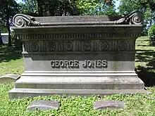 Jones died on August 12, 1891, four days before his 80th birthday, at the Poland Springs Hotel in South Poland, Maine.[6] He is interred in Sleepy Hollow Cemetery in Sleepy Hollow, New York.[7]