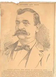 Although Private Andrew Bee of Martin, Michigan also claimed to be the first to recognize Davis, the official report submitted by General James H. Wilson, Commander of the Cavalry Corps, Department of the Mississippi, credited Allegan, Michigan native George Munger with blocking Davis’ escape after others alerted him, allowing Lieutenant-Colonel B D Pritchard's regiment to capture Davis and end his hopes of re-establishing the Confederate Government in the Trans-Mississippi.