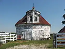 George Rudicel Polygonal Barn is a historic 12-sided barn located in Noble Township, Shelby County, Indiana, USA. It was built in 1910 and is a two-story, vernacular frame barn. It is topped by a cone roof with a large dormer and square cupola.[2]:5