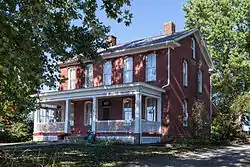 Built in 1879, the farmhouse on this historic property is a two-story, five-bay brick dwelling, which was designed in the Italianate style. It features a one-story, three-bay porch, which was added sometime around 1920.[2]