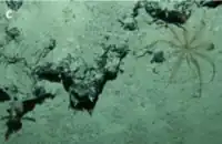 Sediment veneer over consolidated bedform with shark (possibly Squalus griffini)