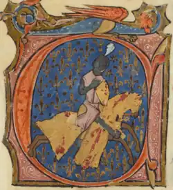 The identification of the trouvère with the lord of Beaumont-en-Cambrésis is complicated by the coat-of-arms depicted in the chansonnier, which does not match that of the lords of Beaumont-en-Cambrésis but rather of the lords of Beaumont-du-Gâtinais. The most likely explanation is that the artist of the chansonnier, tasked with depicting Gilles de Beaumont, simply got the coat-of-arms wrong.[1]