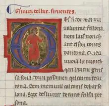 Giraut sits in the initial G of Ges sitot in troubadour chansonnier A