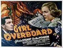 'Girl Overboard' is a 1937 American mystery film directed by Sidney Salkow from a screenplay by Tristram Tupper based on a story by Sara Elizabeth Rodger. The film stars Gloria Stuart, Walter Pidgeon, and Billy Burrud, and was released on February 28, 1937.