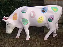 In April 2005, the cow sculpture, was designed in a Spring/Easter scheme and represented the first use of a sponge painting technique to achieve the green grass effect, with sufficient fading to deliver a suitable image.