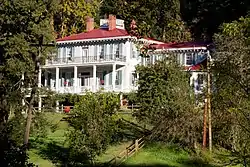 Glencoe is a historic home and resort complex located at Glencoe, Baltimore County, Maryland. It consists if a complex of Italianate-influenced domestic buildings and structures, clustered around a square, two-story frame dwelling. The house features a broad porch, which wraps around two sides with an iron-railed deck atop the porch. Four interior brick chimneys rise around a central observation deck. The property also includes a two-story, mansard roofed stable / carriage house, a smokehouse, ice house, sheep shed, garden house (probably a former chicken house), and a latticed frame gazebo. It was built in 1851-1856 as a private residence, but was subsequently developed as a summer resort.[2]