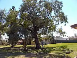 As of 2012 the property occupied an area of 5,540 square kilometres (2,139 sq mi) and had a carrying capacity of 8,500 head of cattle.[1] It is the site of the monument, Sidney Kidman's Tree of Knowledge, the coolibah tree which Kidman camped under when contemplating the development of his pastoral empire. Glengyle and other leases in the channel country, he realised, would be important acquisitions to link his properties in the Northern Territory to markets further south while still providing feed and water.[2]