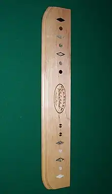 - ↑ World Rules of 5-pin Billiard Archived September 28, 2007, at the Wayback Machine, Chapter II ("Equipment"), Article 12 ("Balls, Pins, Chalk"), Section 2; Union Mondiale de Billard, Sint-Martens-Latem, Belgium, 1997 (official online PDF scan, accessed 11 March 2007)