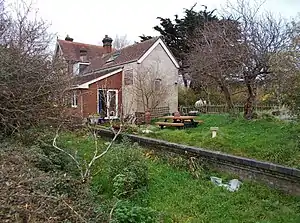 ![]() The old station in 2017, now a private residence. The platform is still clearly visible, with a modern extension built over part of it. | |