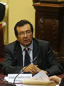 Gonzalo García Núñez (16 February 1947 – 8 January 2024) was a Peruvian industrial engineer from the Peruvian National University of Engineering Lima (1968), a graduate of the French centre of economics programs (CEPE), and the holder of a Ph.D. in economics from Grenoble University. He was a professor, banker, entrepreneur, economist[1] and politician. García Núñez was a full professor of macroeconomics and industrial organisation at the Peruvian University of Engineering, an elected General Secretary, President of the chapter of industrial and economics engineers, President of the Society of Professors of the University of Engineering, secretary and chairman of the faculty of systems engineers and President of the national engineer institution of Peru, the Colegio de Ingenieros del Perú. With the Izquierda Unida party in 1983, he was elected Councillor of Lima, reelected in 1986 and was a candidate for the upper house of the Congress in 1990, under the Izquierda Socialista, but he was unsuccessful. He was an opponent of former President Alberto Fujimori in the Foro Democrático NGO. He was elected Central Bank director by an absolute majority of the Peruvian Congress in 2001. A member of "Justice and Liberty", he was invited by Ollanta Humala, the candidate of the Peruvian Nationalist Party and he ran as Humala's first Vice President during the 2006 national election in the coalition between Union for Peru and the Peruvian Nationalist Party. The ticket won in the first round of voting with 30.6% of the total vote but lost in the second round (47.6%). Gonzalo García was responsible for the large government planning team on the ticket, and was editor of the plan named The Great Transformation, in honour of Karl Polanyi.[2]