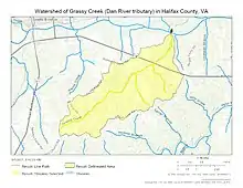 Watershed of Grassy Creek (Dan River tributary) in Halifax County, Virginia, USA