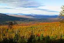 The Great North Woods, also known as the Northern Forest,[1] are spread across four northeastern U.S. states: Maine, New Hampshire, Vermont and New York in the New England area. The area spans from the Down East lakes of Maine to the Adirondack Mountains of New York, generally bordering the Canadian province of Quebec. Collectively, the Great North Woods make up a 26 million acre (105,000 km2) forestland.[1][2][3]