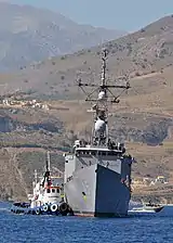 The Oliver Hazard Perry-class guided-missile frigate USS De Wert (FFG 45) arrives for a port visit to Crete on 24 August 2011