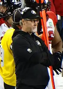 After Stefan Ptaszek left the Marauders to join the CFL's Hamilton Tiger-Cats, Knox was named the Marauders' interim head coach.[2][9] After a 6–2 record in 2016, the interim tag was removed and Knox was named the full-time head coach.[2] In his third year, in 2018, Knox was suspended following an interaction with a game official.[10] After a review by the university's human resources department, Knox was fired on October 22, 2018, having coached only five games that year.[10]